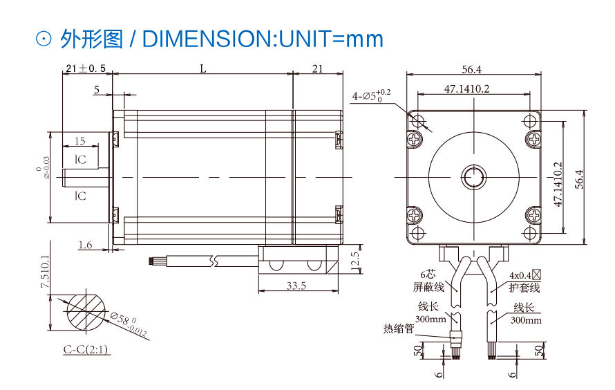 兩相閉環(huán)步進(jìn)電機(jī)-57外形圖